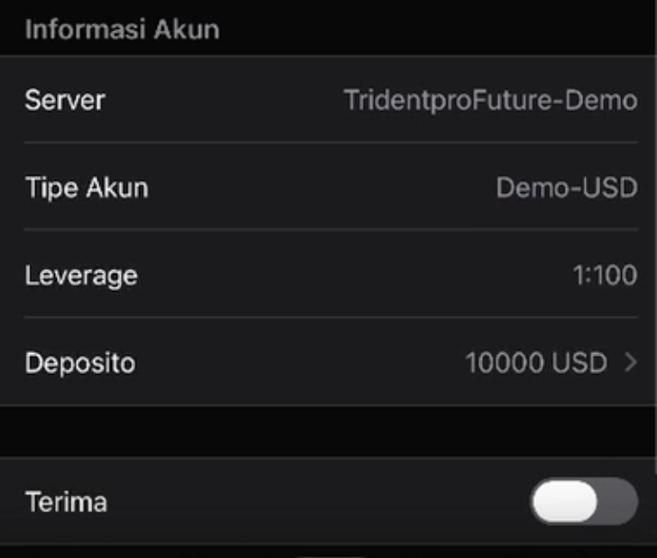 Sebelum mulai praktik di kelas kami, pastikan kamu sudah memiliki akun demo TridentPro di aplikasi MetaTrader 5 (MT5). Akun demo ini akan kita gunakan untuk latihan trading menggunakan saldo virtual, jadi aman untuk belajar tanpa risiko kehilangan uang sungguhan. Ikuti langkah-langkah berikut untuk membuat akun demo TridentPro.