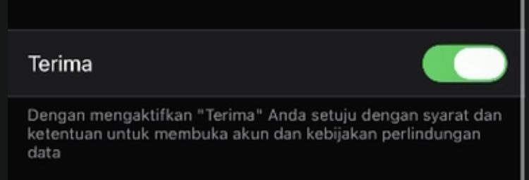 Langkah terakhir klik toggle Terima untuk mengaktifkan akun.