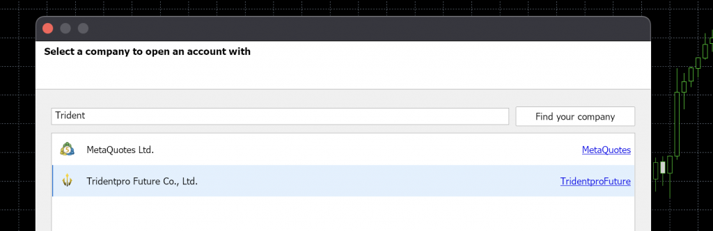 Pada kolom find your company isikan tridentpro. Pilih yang Tridentpro Future lalu klik Next.