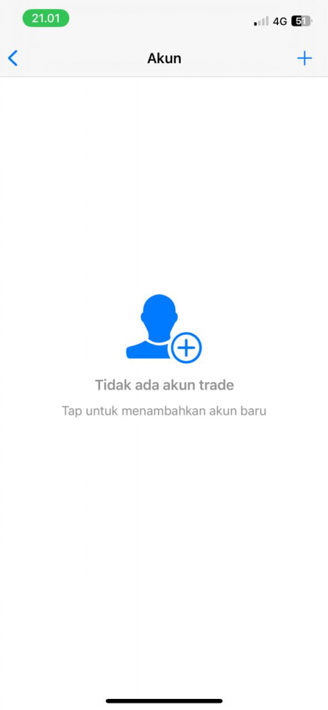 Di mobile pilih Pengaturan > Akun Trade. Lalu klik tombol plus di pojok kanan atas.