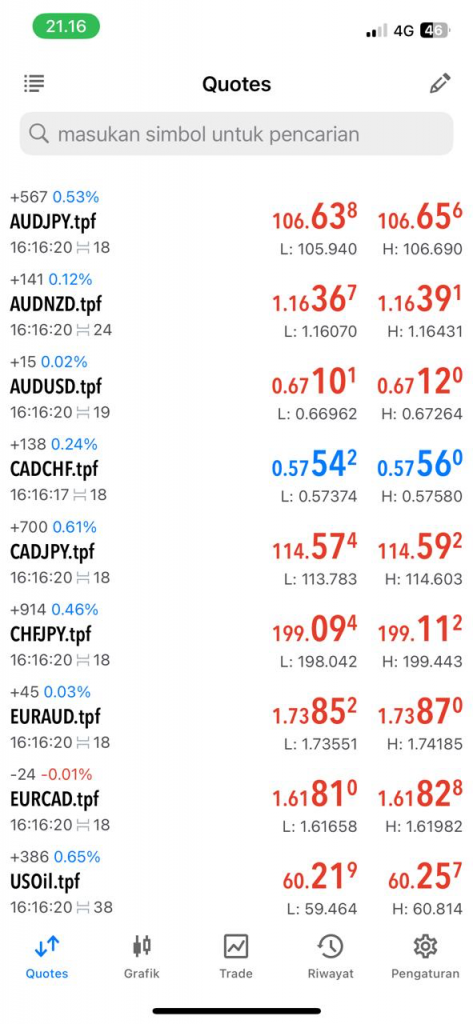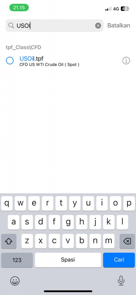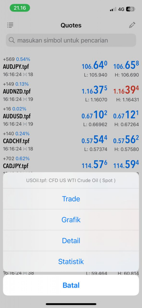 Jika berhasil kembali ke quotes akan muncul USOil.